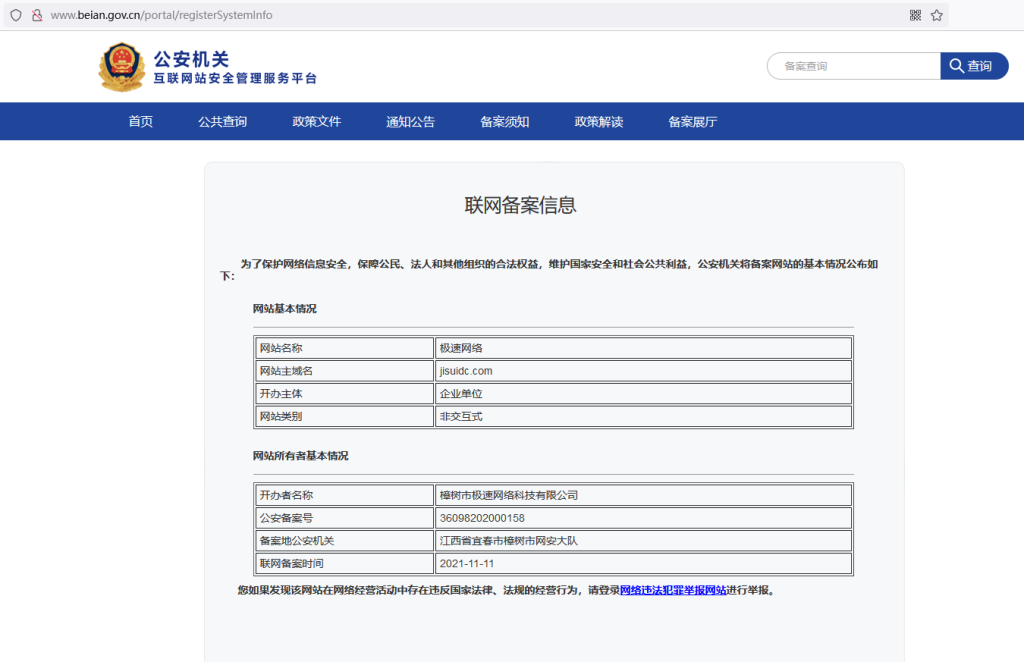 樟樹市極速網(wǎng)絡(luò)科技有限公司嚴(yán)格履行信息安全義務(wù),保障公民和用戶的合法權(quán)剪輯,維護國家安全和社會公共利益,在市網(wǎng)安大隊進行了聯(lián)網(wǎng)備案。